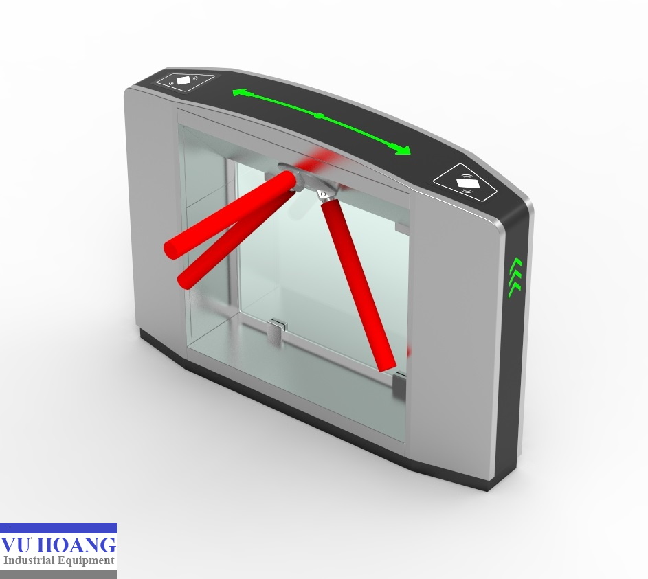 - Cổng xoay: Cổng có 3 thanh chắn (3 càng) được bố trí cách đều nhau 120 độ, tạo thành hình tròn. Các càng này có thể xoay quanh trục trung tâm đóng vai trò ngăn chặn người dùng không được phép đi qua